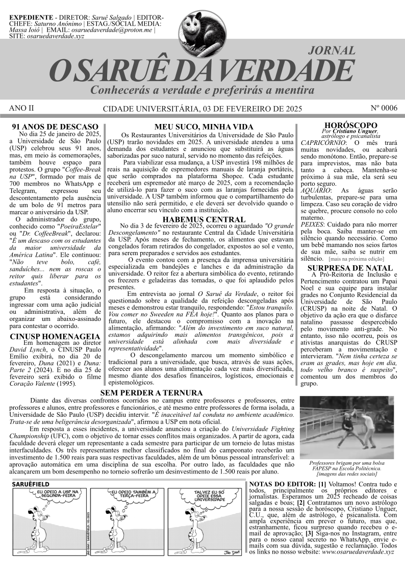 DIRETOR: Saruê Salgado | EDITOR-CHEFE: Saturno Anônimo | ESTAG./SOCIAL MEDIA: Massa Ioiô | E-MAIL: osaruedaverdade[arroba]proton.me | SITE: osaruedaverdade.com